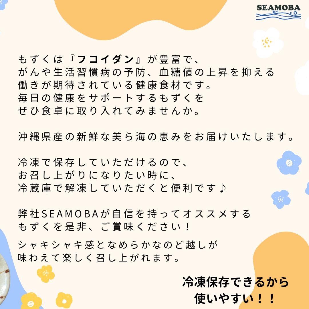 沖縄県産のもずくを厳選し、酢を一切使わず、めんつゆのような調味料を使ってまろやかな風味に仕上げています。お酢が苦手な方、お子様やご年輩の方も優しく召し上がれます。